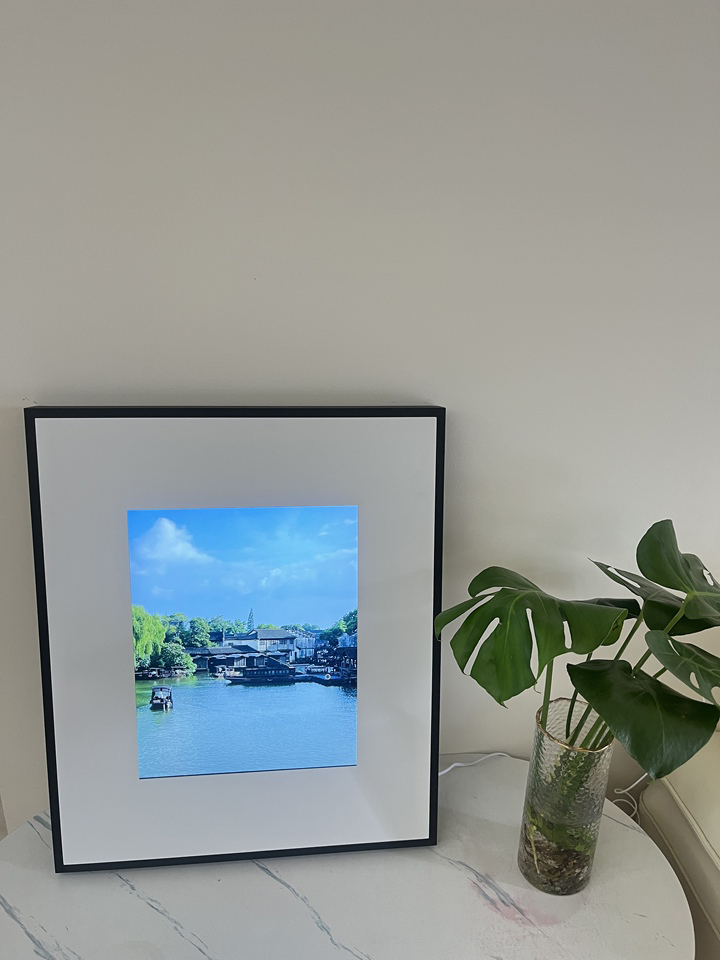 I've had this music Frame speaker for a few months now. I absolutely love listening to Chinese songs. The lyrics of Chinese songs displayed on the screen seem to dance, which is truly breathtaking. When it's not playing songs, it cycles through classic art galleries. The frame is well-made and looks like a high-end canvas. The sound is rich and fills my apartment. It's an expensive piece, but as an art lover, it's worth every penny.